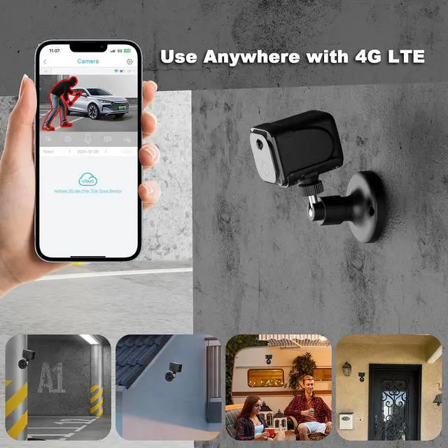 Long Battery Life & Smart Power Saving Usage May Affect Duration:This 4G security camera operates with standby up to 20 days per charge. Actual battery life may vary depending on motion-triggered recording and frequency of live viewing through the app. Supports operation while charging for continuous 24/7 monitoring, making it a dependable no WiFi security camera for outdoor or off-grid setups.