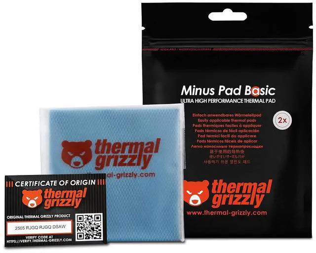 The electrically non-conductive Minus Pad Basic thermal pads are based on the proven Minus Pad 8 and have been optimized for improved thermal conductivity and compressibility. They are suitable for SSDs, graphics card coolers, GPU water coolers, and electronic components.