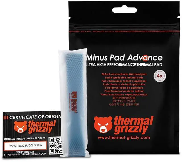 Thermal Grizzly TG-MP-A-120-20-10-4 Minus Pad Advance 120x20x1.0mm, Non-Conductive, High Thermal Conductivity & Compressibility for SSDs, GPUs & Electronics 4-Pack