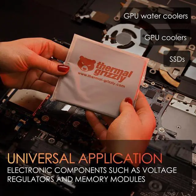 The electrically non-conductive Minus Pad Advanced thermal pads are based on the proven Minus Pad 8 and have been optimized for improved thermal conductivity and compressibility. They are suitable for SSDs, graphics card coolers, GPU water coolers, and electronic components.