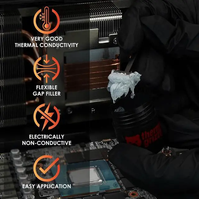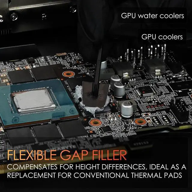 TG Thermal Putty is an electrically non-conductive alternative to conventional thermal pads. As an easy-to-apply and flexible gap filler, it compensates for height differences, making it an ideal replacement for thermal pads on graphics cards.
