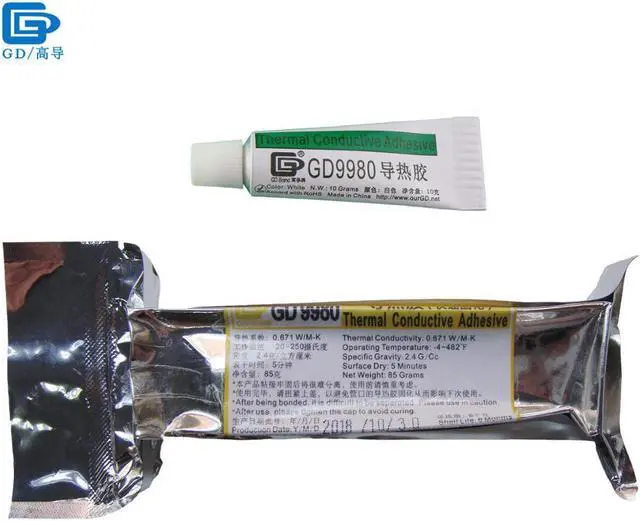 3. The curing speed of 9980 thermal conductive adhesive is related with environmental temperature, humidity and the thickness that smeared. The higher of the temperature and humidity value, and the thinner you smear (recommend the thickness of A4 paper), the curing time will be much shorter. Conversely, the time will be longer.