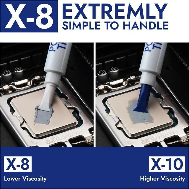 The X-8 dry socket paste consists of a silicone-based carrier material to which aluminum and aluminum oxide powder are added. The mixing ratio is coordinated in such a way that viscosity is achieved, which allows easy application of the paste. At the same time, X-8 thermal glue is viscous enough to offer some resistance to the pump-out effect. The mixing ratio of X-8 is balanced to achieve good thermal conductivity, making this product the best heat sink compound available in the market. For spanish pasta termica para pc gamers