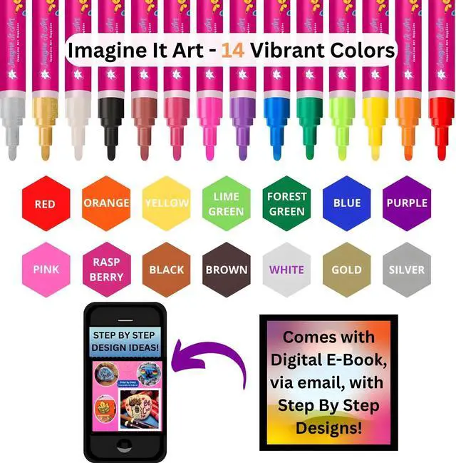 14 Colors Acrylic Paint Marker Pens, 3mm Medium Tip Art for Rock Canvas Ceramic