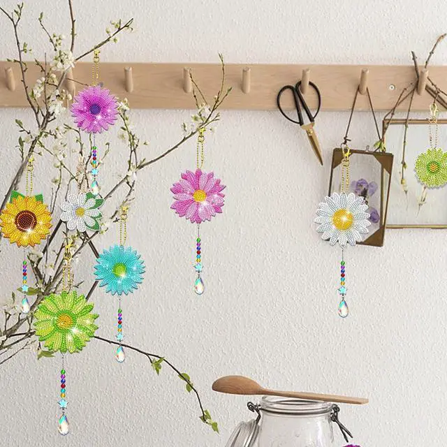 6 x Daisy Diamond Painting wind chime kits