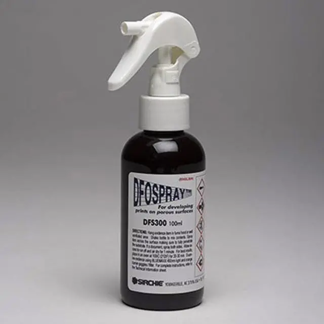 After capturing your perfect shot, enhance your photographic development process with the DFO Spray Pump, 100ml. This high-quality product, brought to you by the reputable brand Sirchie, is an effective and versatile tool for any photography enthusiast or professional. The DFO Spray Pump is filled with 1, 8-diafluoren-9-one (DFO), a potent analog of ninhydrin. This powerful reagent is known for its ability to react with amino acids, making it an exceptional solution for developing latent fingerprints on porous surfaces. Whether you're working on a crime scene investigation or an artistic project, this durable spray pump will serve you well.