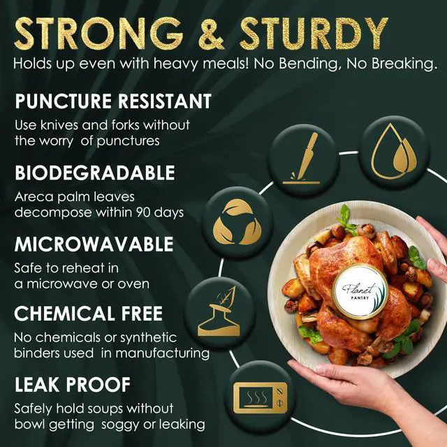 Not all the palm leaves can transform to the tableware. Our palm leaf tableware are very selective to ensure only the good quality ones are used in the manufacturing process. They are thicker and more durable.
