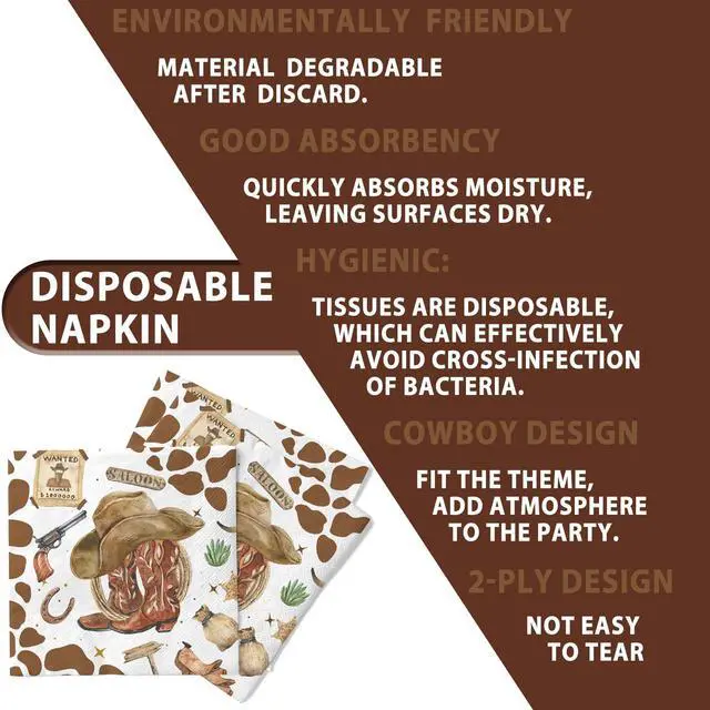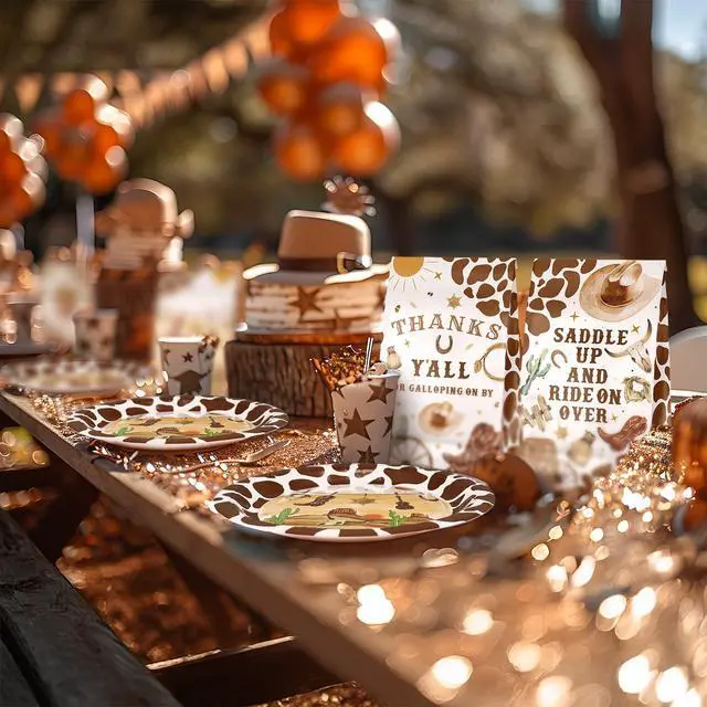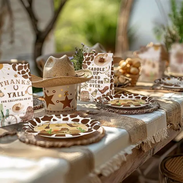 Quick Cleanup, More Adventure Spend less time washing dishes and more time enjoying the party. As a disposable yet stylish western party decor solution, this set allows for quick and easy cleanup after the cake and snacks are finished.