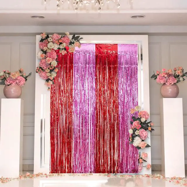 PACKAGE : 3 pack red pink foil fringe curtains, extra large size (6.6 x 3.3 x 0.1 inches) each, perfect for Valentine's Day decorations and general party decorations. Our foil fringe curtains will let your loved ones feel your love.