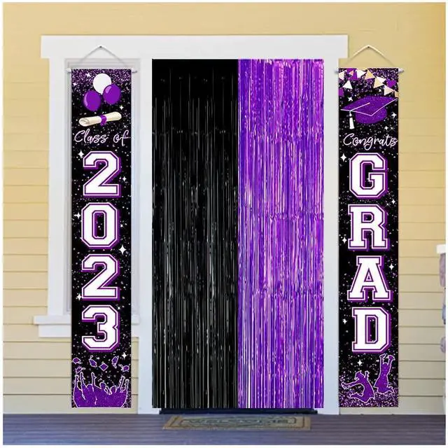 Purple Black Party Decorations Backdrop Curtain - The black and purple combination includes 3 PACK foil curtains. Size: 0.6 x 6.8 x 9.4 inches. You may need to order double if you want to cover more space or achieve a tighter look to your decor.