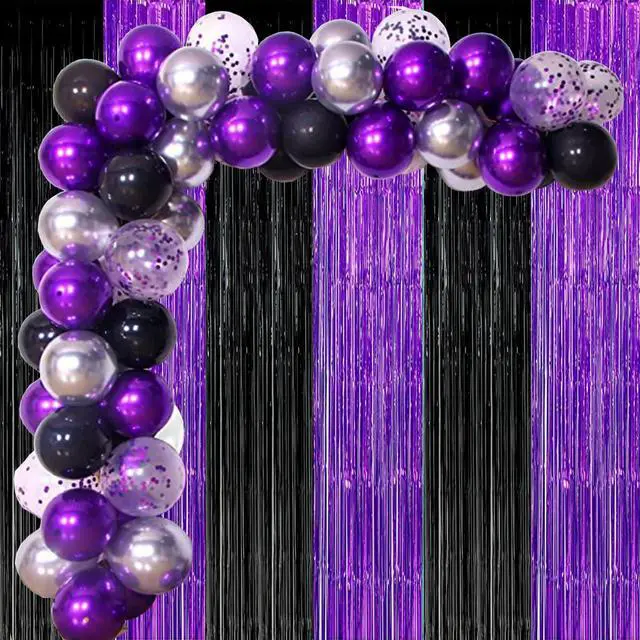 Widely Used: The black and purple birthday decorations backdrop tinsel is perfect for Halloween parties, birthdays, graduations, baby showers, weddings, engagements, bridal showers, anniversaries, bachelorette parties, and special celebrations.