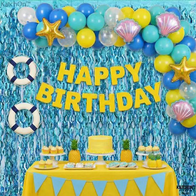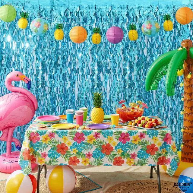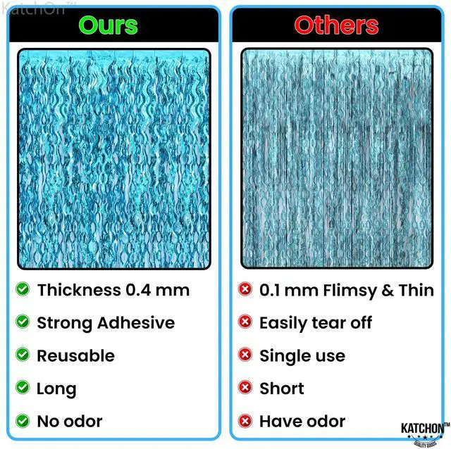 STURDY AND DURABLE | REUSABLE: This elegant decoration is sturdy enough to be reused at any other party. This foil material blue streamers cut into fringe curtains for beach theme party decorations is pretty wide. This tinsel backdrop as an under the sea backdrop or gender reveal backdrop is reusable for many occasions like birthdays, anniversaries, or snowy celebrations.