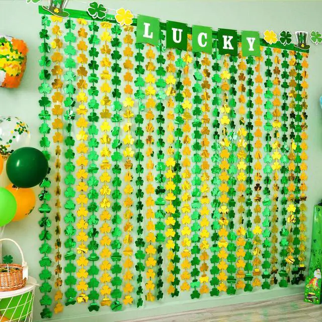 EASY TO APPLY: Tear off double-sided adhesive tape, then paste the fringe curtain on the top of your desired location, suitable for doorway, window, wall, living room, stage background decorations and St Patricks Day classroom decorations.