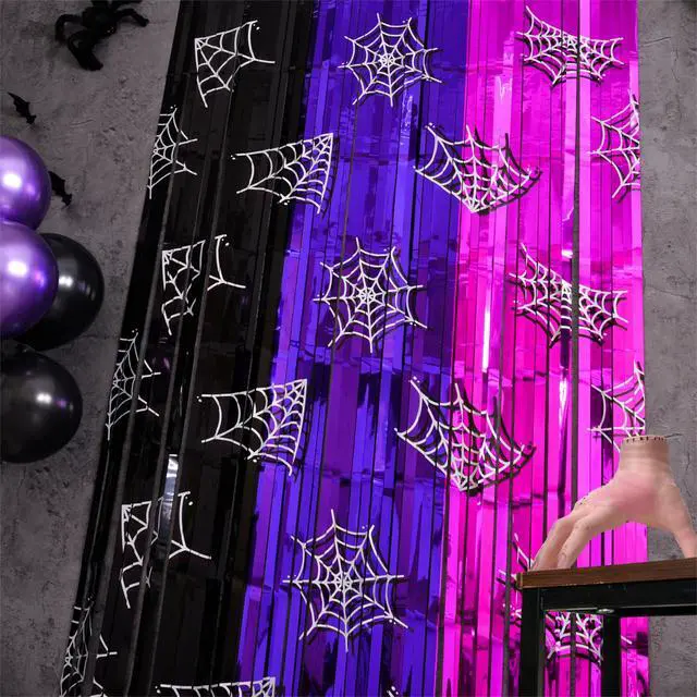 Premium Quality: Compared to traditional foil fringe curtains, our themed fringe curtain printed with vivid Spider Web element patterns. High-quality material of 3.0 wire metallic foil, 0.3 mm thickness, not easy to tear, has no odor, and does not fade.