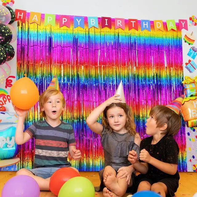 [Rainbow Metallic Tinsel Foil Fringe Curtains]: Add a touch of shimmer to your party with these delightful curtain backdrops made of tinsel boasting a shiny surface. Perfect for enhancing the festive atmosphere as decorations for various occasions.