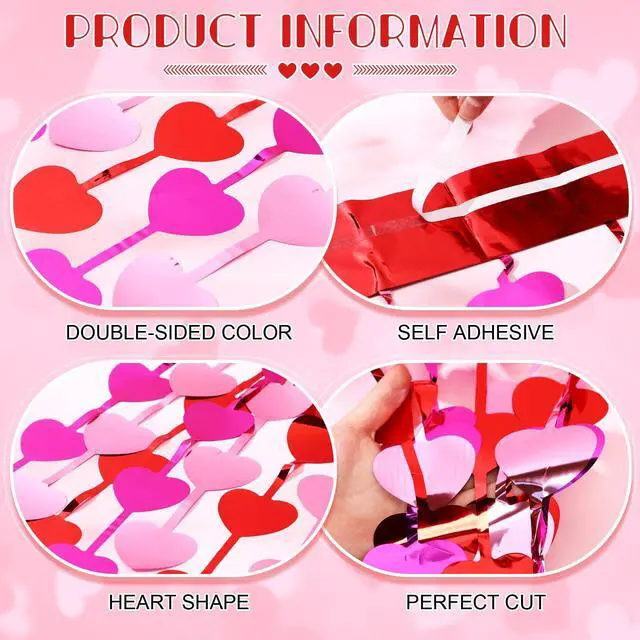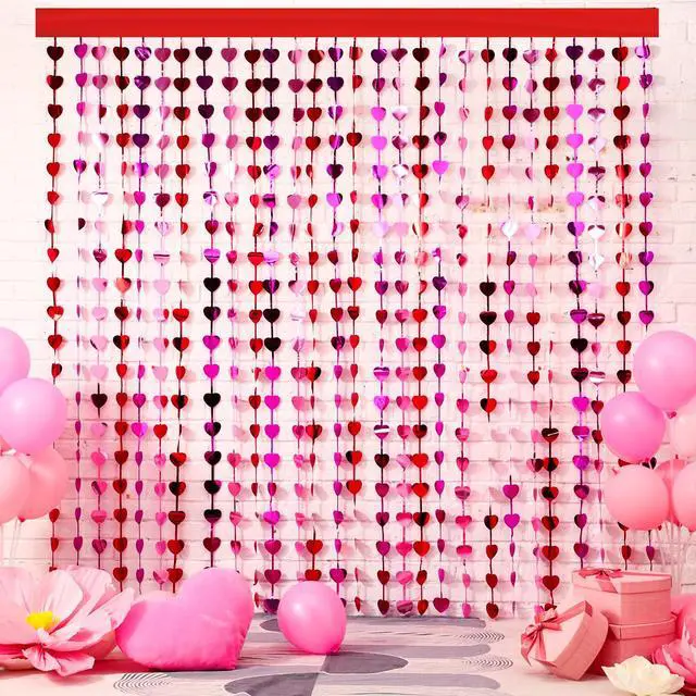 Quality Material: crafted from PET material, these red pink heart shaped foil curtains ensure long lasting use without compromising on quality; The material allows them to withstand various events, maintaining its vibrant colors of red, rose red, and pink even after multiple applications.