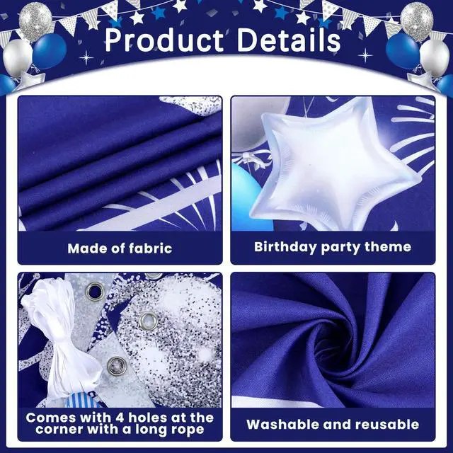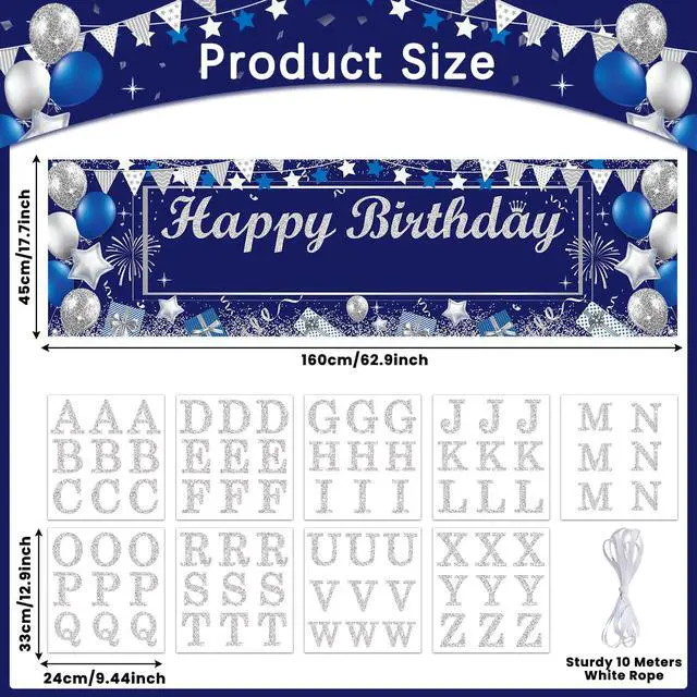 Quality material: Crafted from premium polyester fabric, this silver and navy blue birthday backdrop is durable, tear-resistant, and reusable, designed to withstand multiple uses without losing its vibrant look. The waterproof glitter letter stickers feature a strong adhesive, ensuring your customized message stays intact during the birthday party.