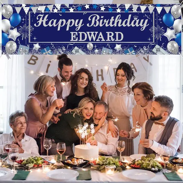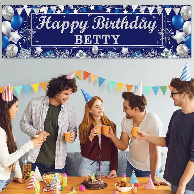Eye-Catching design: Designed with a navy blue background and adorned with silver and blue balloons, stars, gift boxes, and stunning text Happy Birthday, this personalized birthday banner brings elegance to your celebration. The glittering silver letters add delicacy, making it a beautiful centerpiece for any happy birthday banner backdrop.