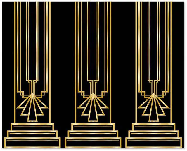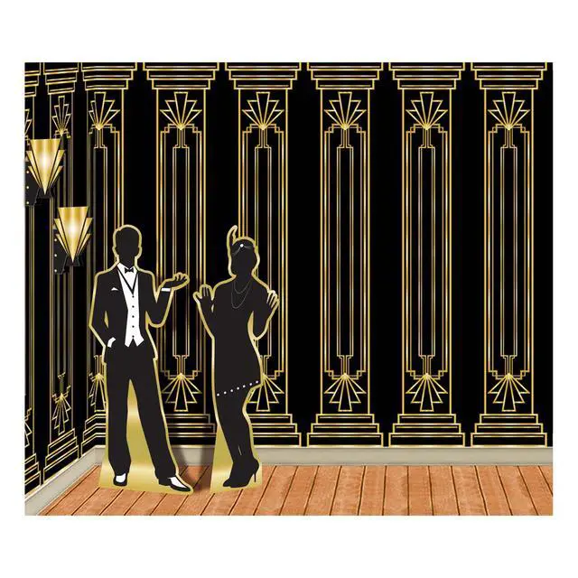 20S THEMED PARTY DECORATIONS: Set a classy scene and embrace a different era with this 20s themed backdrop that will liven up your party. The black and gold wall covering will intrigue guests and give them something to talk about.