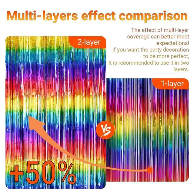 Set of 2: Its your choice, hang in two different locations or double layer for extra effect. Whether youre celebrating the last fling before the ring or a Birthday party, the lightweight tinsel curtains (each 1 x 1 x 1 inches) are super easy to use and will pump up the party!