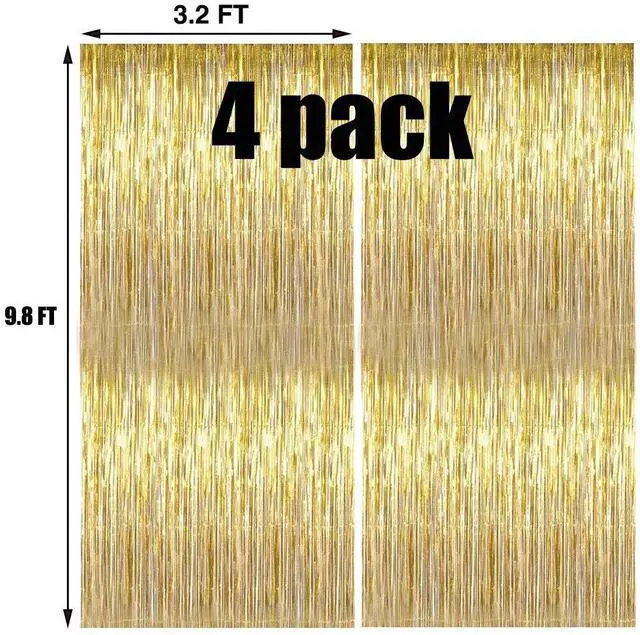 Size: Pack of 4. Each foil curtain measures 117.6 x 39.6 x 0.01 inches, and it is cuttable, allowing you to shorten it to decorate your tables, doors, or walls. You will be amazed at the atmosphere and visual appeal they create.