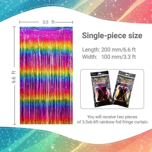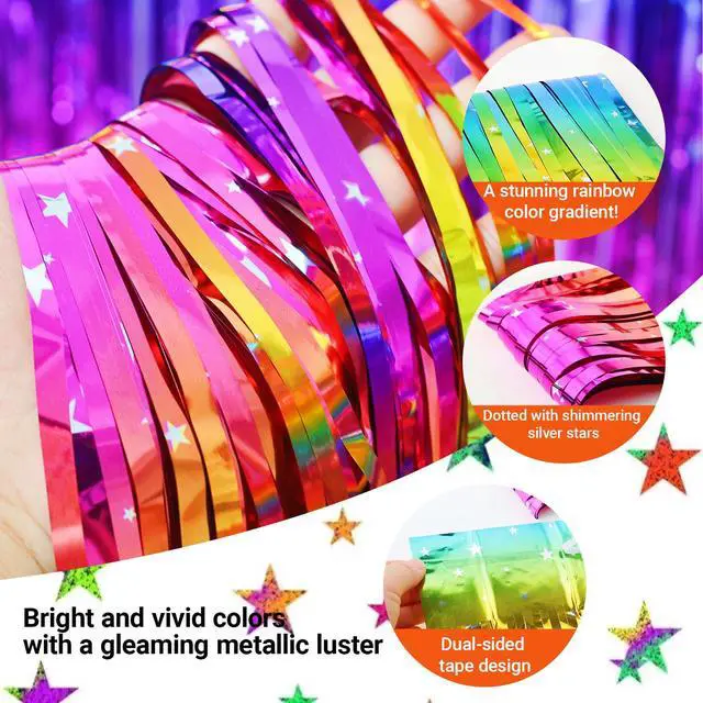 Stunning Rainbow Metallic Shimmer: Transform your event instantly! Dazzling tinsel foil fringe curtains create a mesmerizing, ultra-shiny rainbow backdrop that captures light and adds vibrant sparkle to any celebration.
