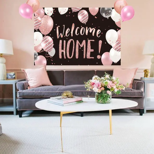 Package Included 1x black and rose gold extra welcome home fabric backdrop banner photography background, one pack fulfilled your every need. It will offer you an unforgettable experience!
