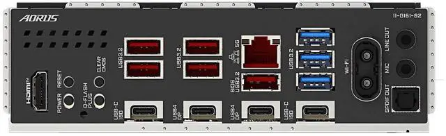 - 5 x USB 3.2 Gen 2 Type-A ports (red) on the back panel