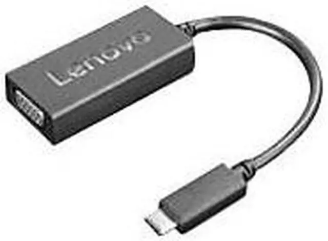 The Lenovo USB-C to VGA Adapter turns an available USB-C port into a VGA display adapter for connecting to any display, projector or TV with VGA input. The Lenovo USB-C to VGA Adapter can be used to mirror your primary display or to extend your display to double your workspace requiring no extra drivers to be installed. Features: USB-C to VGA conversion delivers high-quality video to your display, projector or TV with resolutions up to 1920x1200. Lightweight, portable and sleek design to accompany your Lenovo system Note: Depending on many factors such as the processing capability of the host and peripheral devices, file attributes, and other factors related to system configuration and operating environments, the actual data transfer rate will be slower than 5 Gbit/s on USB 3.1 Gen 1 (USB 3.0) connectors, slower than 10 Gbit/s on USB 3.1 Gen 2 connectors, and slower than 20Gbit/s on USB 3.2 connectors. Note: Depending on many factors such as the processing capability of the host and peripheral devices, file attributes, and other factors related to system configuration and operating environments, the actual data transfer rate will be slower than 5 Gbit/s on USB 3.1 Gen 1 (USB 3.0) connectors, slower than 10 Gbit/s on USB 3.1 Gen 2 connectors, and slower than 20Gbit/s on USB 3.2 connectors,
