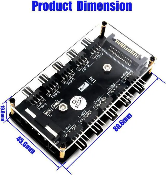 SATA 15-Pin connector) •Feature: 1. Compatible with all 12V CPU or system fans with 4 pin or 3 pin connector 2. Magnetic standoff design for easily fixing the hub in the chassis.