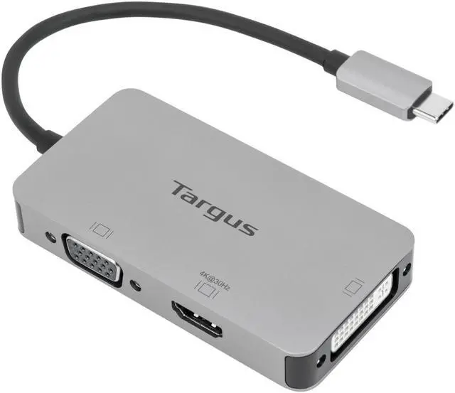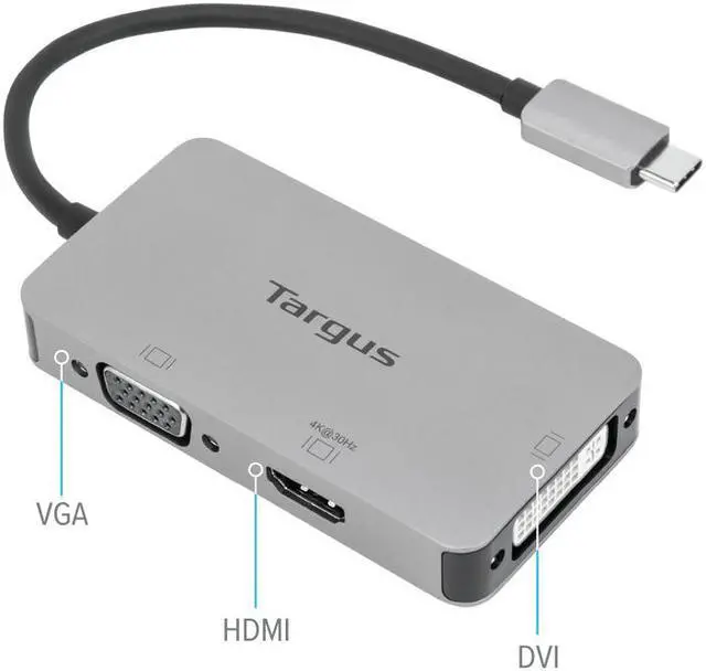 Connect to virtually any display with the versatile USB-C Single Video Adapter with 4K HDMI/DVI/VGA. Connect your USB-C-enabled device to a single HDMI, DVI, or VGA display* with this compact and lightweight adapter that’s perfect for the home, office or anywhere in between. With no need for additional software needed, it’s great for mobile workers or those in hoteling or hot-desking environments. *Only one video output port works at a time. If two or three video ports are connected, then only one video port can output signal. The priority sequence is HDMI> DVI > VGA.