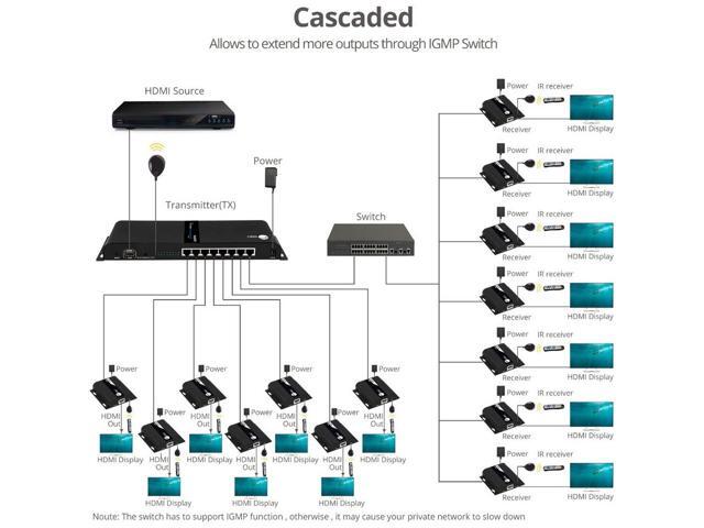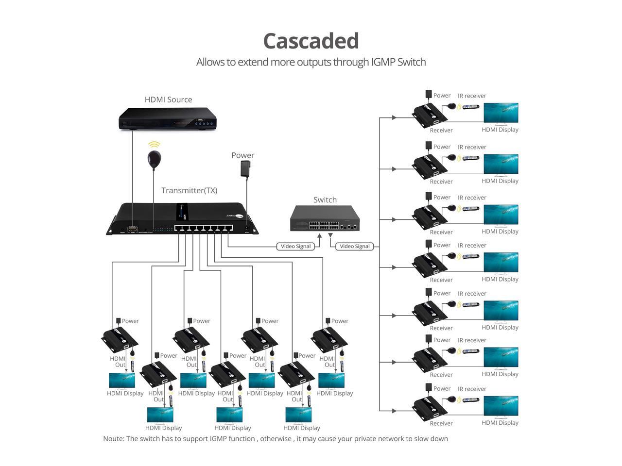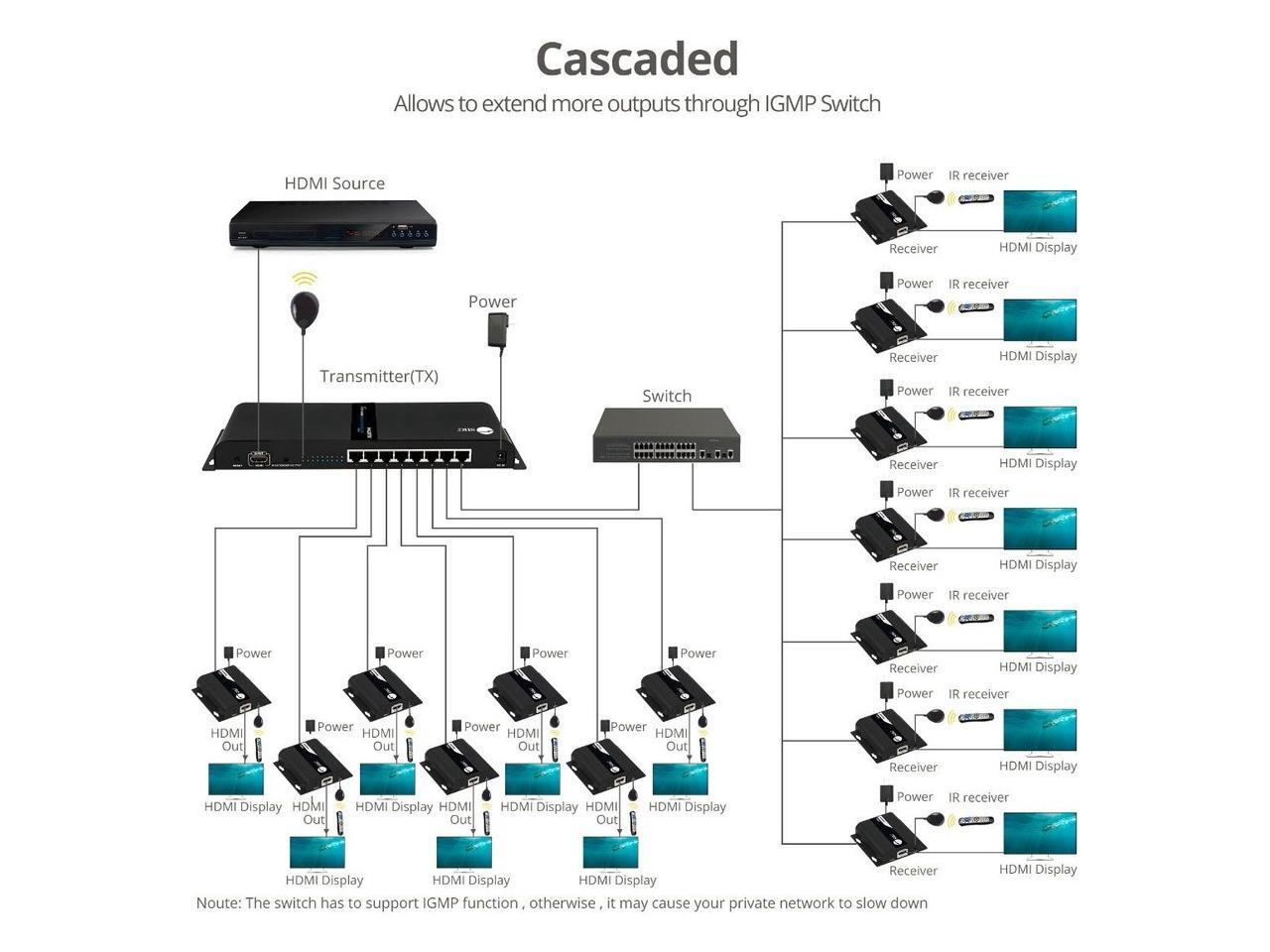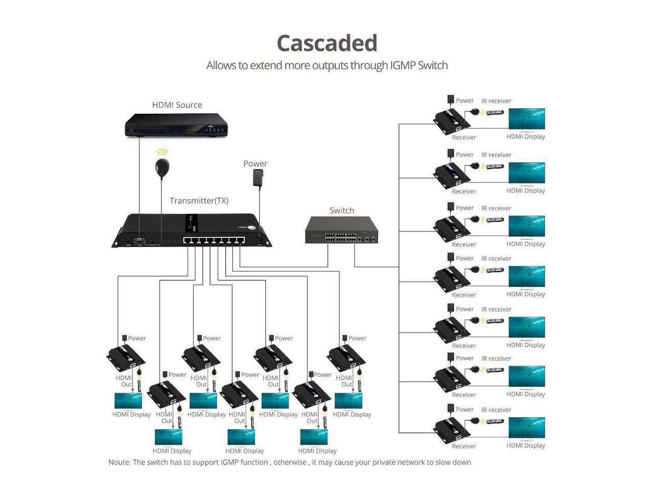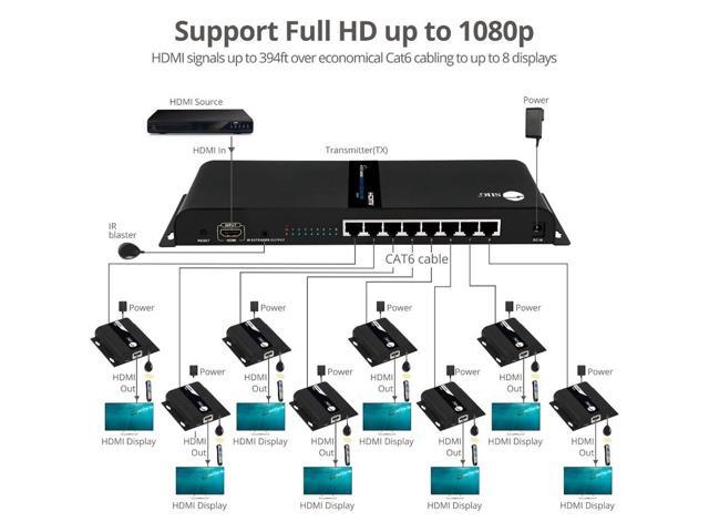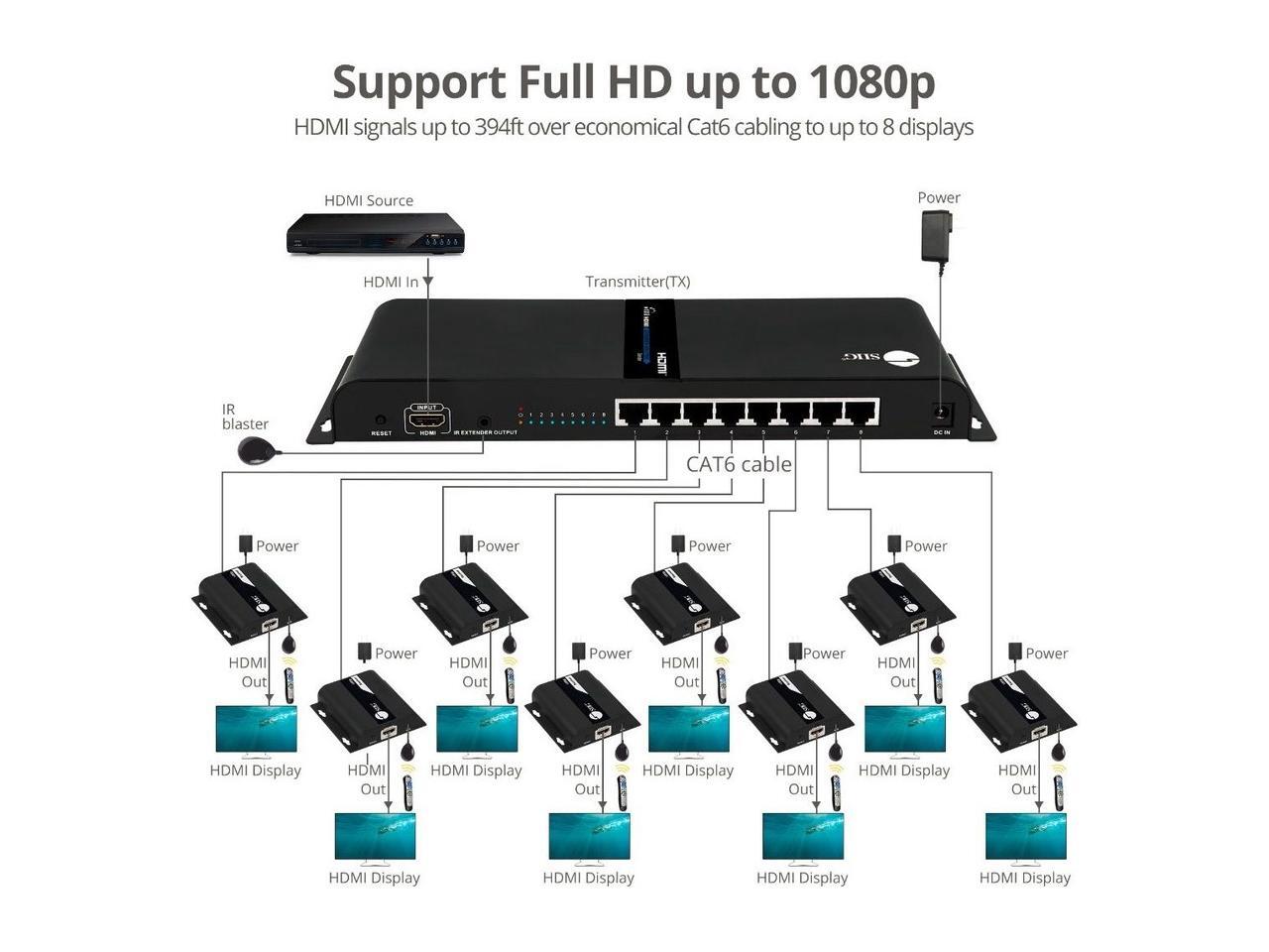 SIIG 1x8 1080p HDMI Splitter HDbitT over IP Extender Kit 120m CEH26W11S1