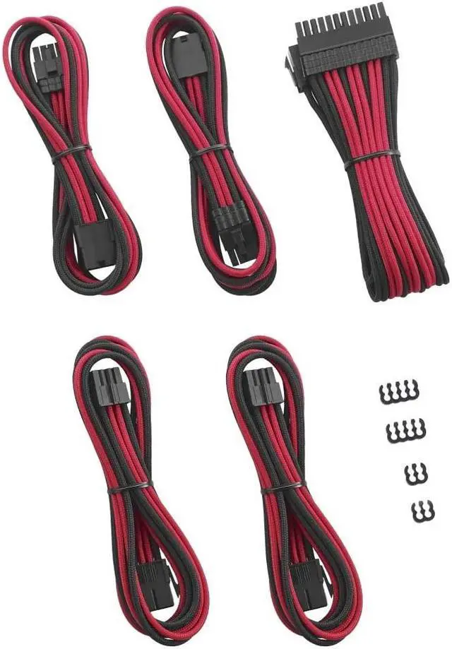 Better still, the 24-pin ATX extension features a carefully crafted curve, while 4+4 pin EPS cable also comes with our new Hybrid Cable Combs, allowing you to get a consistently clean aesthetic across every cable. Each wire is individually wrapped in our famous ModFlex sleeving for rich color and a soft, luxurious feel. Each cable is 100% heatshrink-free for the cleanest possible look, and precision molded connectors ensure a secure and proper fit. Here's what you get inside the package: