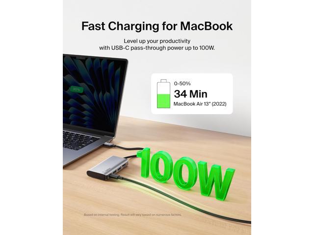 - Charge your laptop with up to 100W of pass-through power (minus 15W for the dock's operation). Power your laptop without sacrificing power for port expansion.