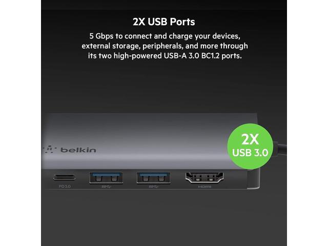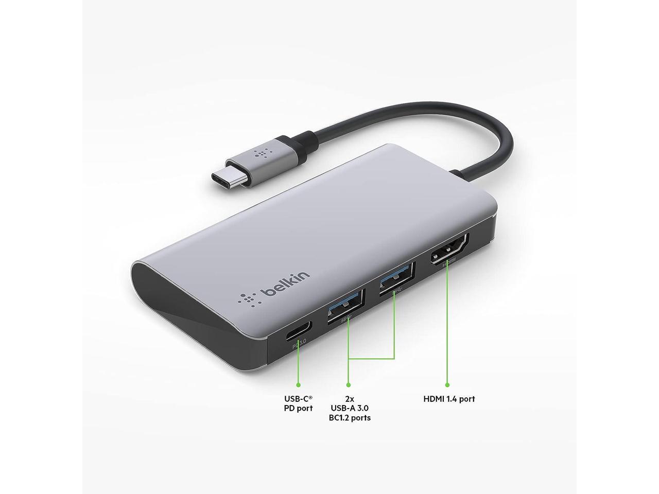 Belkin USB-C Hub - 4-in-1 Multi-Port Adapter Laptop Docking Station with 4K HDMI, USB-C with 100 Watt Pass-Through Power Delivery, and 2 X USB-A Ports for all your devices