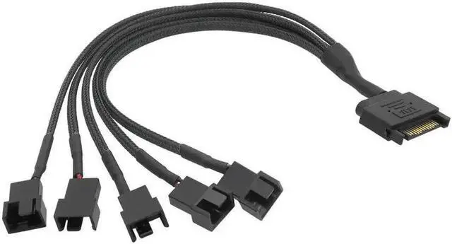 • Black Sleeved 30cm Cooler Cooling Fan Splitter Power Cable 12V SATA To Multiport 3/4Pin Connector for M-olex IDE Computer PC DIY(SATA 1 to 5)