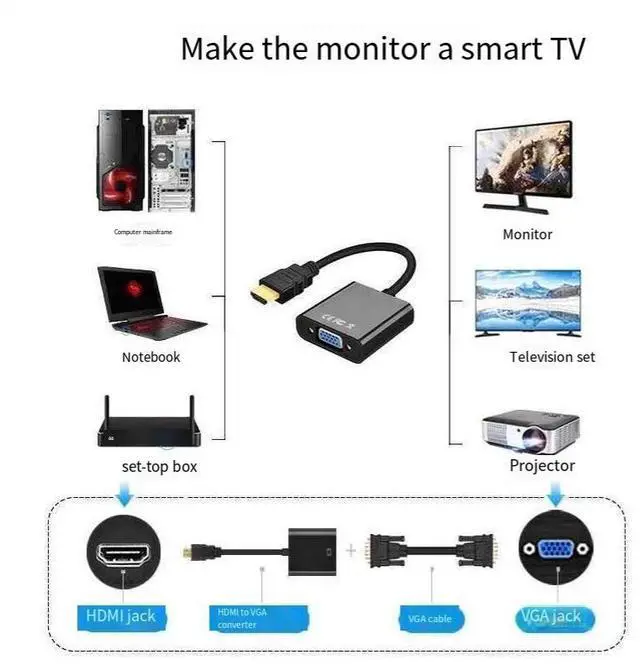 This product is suitable for most laptops, tablets, cameras and other devices with Mini HDM| interfaces to convert VGA video signals and connect to display devices such as monitors, projectors and televisions.