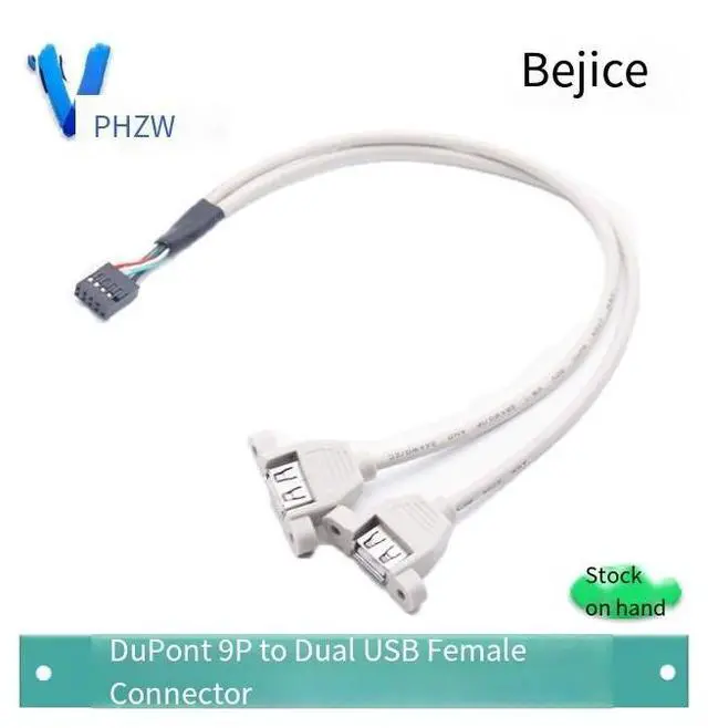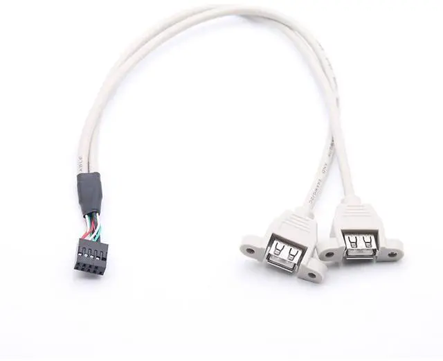 Product Description analysis: High-quality motherboard 9-pin to dual-port USB adapter cable, using 28AWG thick wire, exquisitely crafted, stable performance. The USB female port end has screw holes, with a distance of approximately 30mm between the two screw holes, which can be fixed to the case panel. Fix the baffle on the case, and then insert the wire into the USB pin of the motherboard. Pay attention to the sequence of the wires. Plugging them in incorrectly may burn out the USB device.