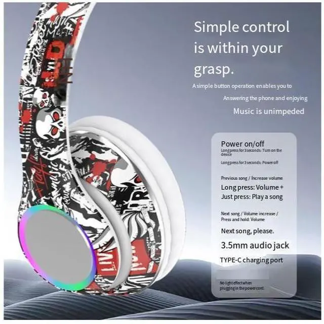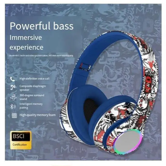 Cross-border bestseller Graffiti wireless over-ear headphones with deep bass, Bluetooth 5.4, music, and universal wired headsets for mobile phones