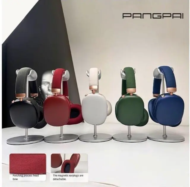 Custom-made best-selling retro magnetic wireless over-ear Bluetooth headphones with metal spray-painted knobs and fabric headbows, private mold factory
