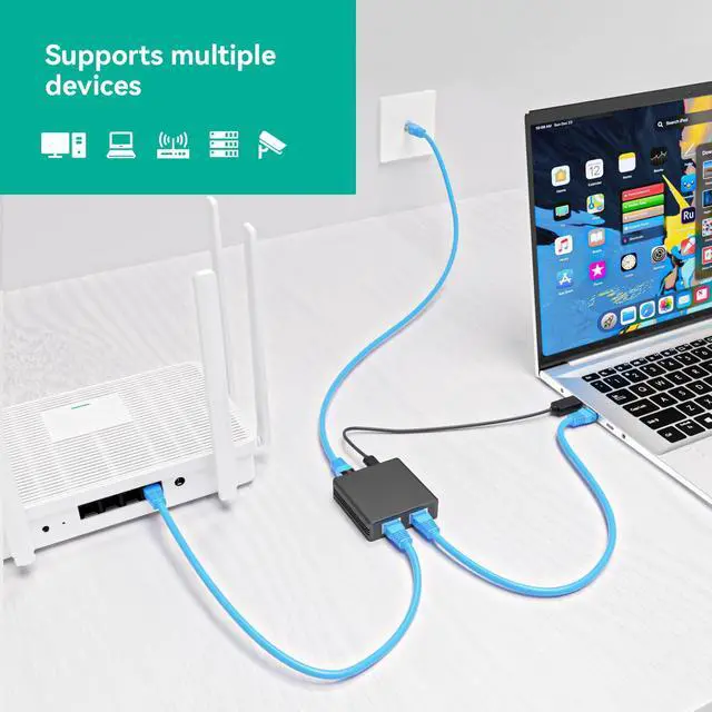 BLIYEE 2025 New Gigabit Ethernet Splitter 1 to 2, High Speed 1000Mbps Network Splitter, Internet Cable Splitter, Dual LAN RJ45 Port Router Switch Work with Cat5/5e/6/7/8 Cable