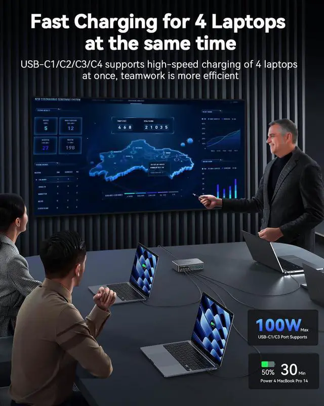The charging station supports charging MacBook and other laptops, and can support charging of 4 computers at the same time.