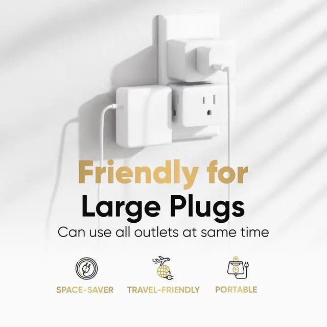 ![]() 1 to 3 Outlet extenders | ![]() 2 to 6 White Outlets | ![]() 2 to 6 Surge Protected | ![]() 2 to 6 Surge Protected |