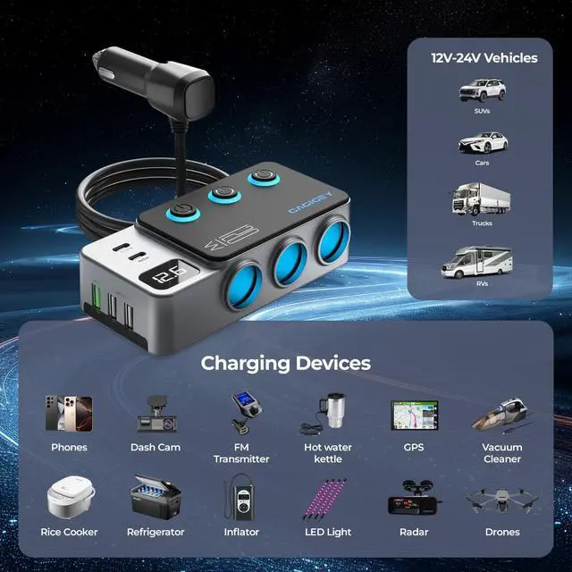 | Features | USB-A, 3 USB ports, 5 volts output, 15 amps, 1250 watts, 125 volts, 3 prong Type B plug, Compact design, Compatible with Home Theater, Smartwatches, Hair Dryer, Smartphones, Water Boiler, Mixer Grinder, Microwave Oven, Laptops, Radio, Tablets, E-Book Readers, PC, Juicer, Router, Fan, Projectors, Scanner, Modem, Cameras, Toaster, Set Top Box, Coffee Machine, Television, Printers, Heater, Lamp, Noise Maker, Monitors, Fax Machine, Rice Cooker, DVD Player, Air Conditioner, Light, Audio Sound System, Speakers, Game Consoles, Electric Fountain, MP3 Players, Freezer, Iron, Cellular Phones, Refrigerator |