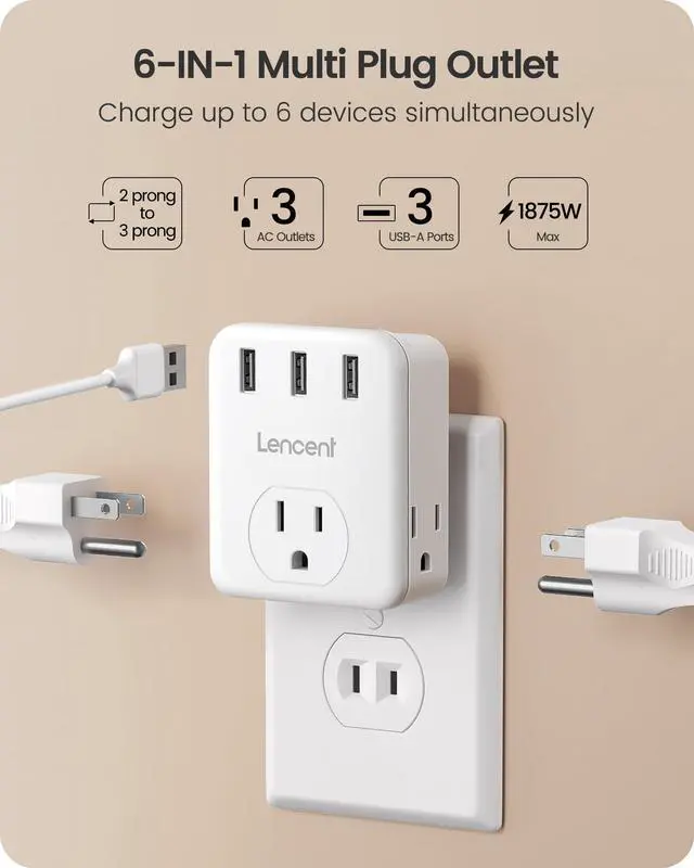 Multi Plug Adapter 2 Prong to 3 Prong