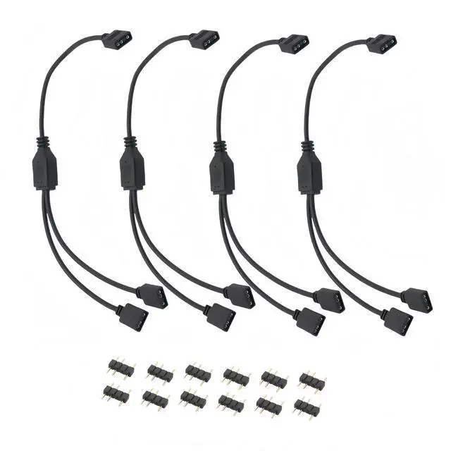 Package Contents: 4 x ARGB 1-to-2 Splitter Cables 5V 3-Pin (11.8 inches); 12 x 3-Pin Connectors.