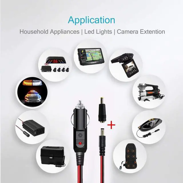 - Suitable for radio, air cooler, tire inflator, vacuum, air blower, DVD player, camera, car, truck,bus,van and more other 12-volt devices.