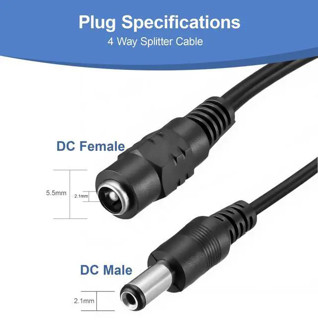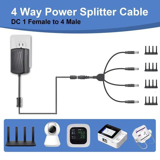 Safely connect 4 devices (cameras/LEDs/routers) to one 12V DC adapter, eliminating messy cables and saving extra adapters.