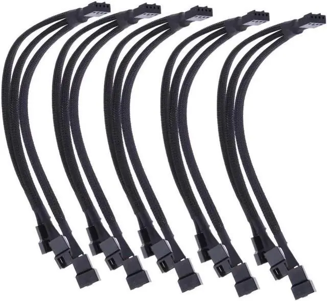PWM Fan Splitter Cable Y Splitter Computer Pc Fan Power Cable 1 to 3 Ways, Black Sleeved Braided