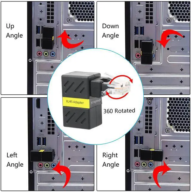 2Pcs 90 Degree Cat 6 Male to Female Ethernet Extender Adapter